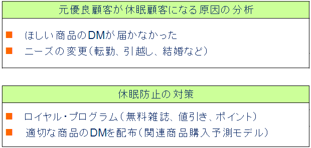 | 潜在休眠顧客の予想と 休眠顧客の活性化 |
